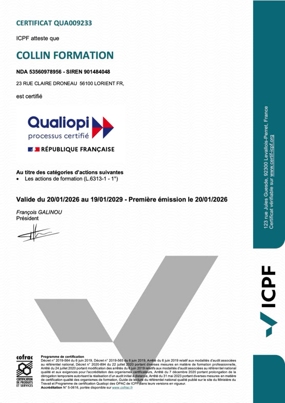 Prérequis, objectifs, durée, modalités et délais d’accès, méthodes pédagogiques, évaluations, tout est défini ensemble, en toute transparence.